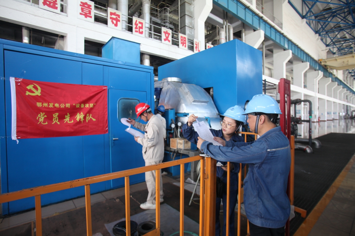 鄂州電廠檢修部黨員先鋒隊及時開展消缺工作(攝影:王鑫)