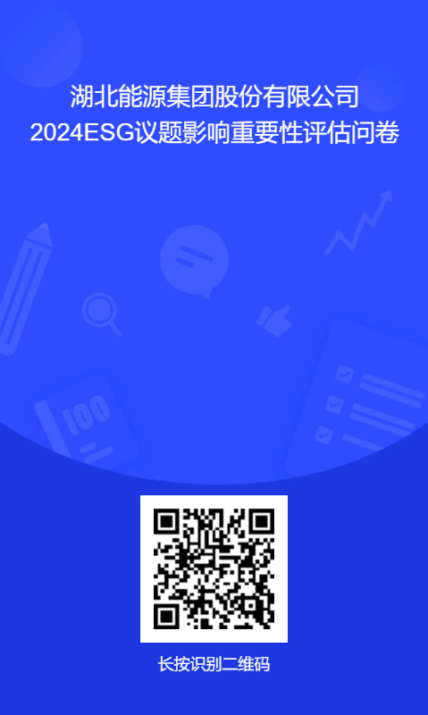 您好!湖北能源集團股份有限公司誠邀您參與本次調研,以協助我們評估湖北能源在環境、社會及公司治理(以下簡稱“ESG”)領域相應議題的表現是否會對經濟、社會和環境產生重大影響。